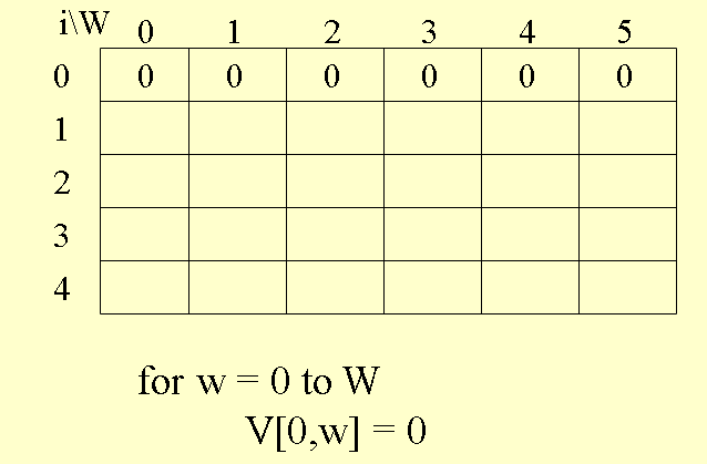 for (w = 0; w <= W; w++)