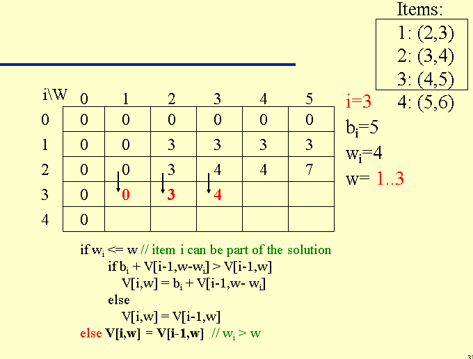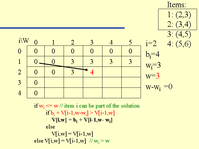 Vix = MAX ( V(i-1)x , vi + V(i-1)x- wi ) OR