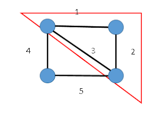 Now we have 3 edges - 3 ,4 and 5, from the nodes that we have visited, so lets take 3 as it is minimum, but it doesn’t add any new node, so we just discard it. (Marker in the below diagram means that we are just covering it)