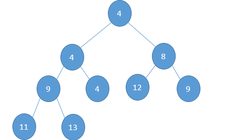Now the process of bubbling down starts. We see that at the root node, 12 is greater than 4 and 8. So we swap it with smaller of children i.e. 4.