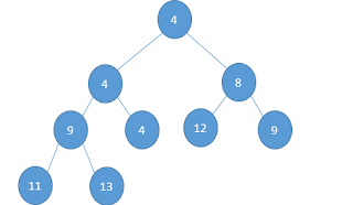 - if current node has one child: check, if heap property is broken, then swap current node’s value and child value; so we bubble down the child;
