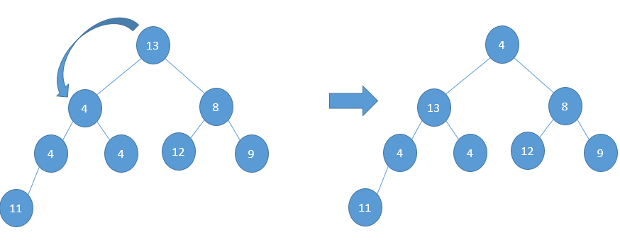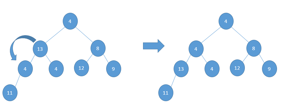 But still 13 is greater than 11, and hence heap property is still not satisfied:
