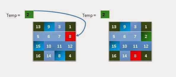 - Now take the corner elements based on i and j, and swap them accordingly