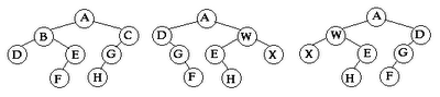 In the diagram below, the tree in the middle is not isomorphic to the other trees, but the tree on the right is isomorphic to the tree on the left. Write a method isIsomorphic that returns true if its two tree parameters are isomorphic and false otherwise.